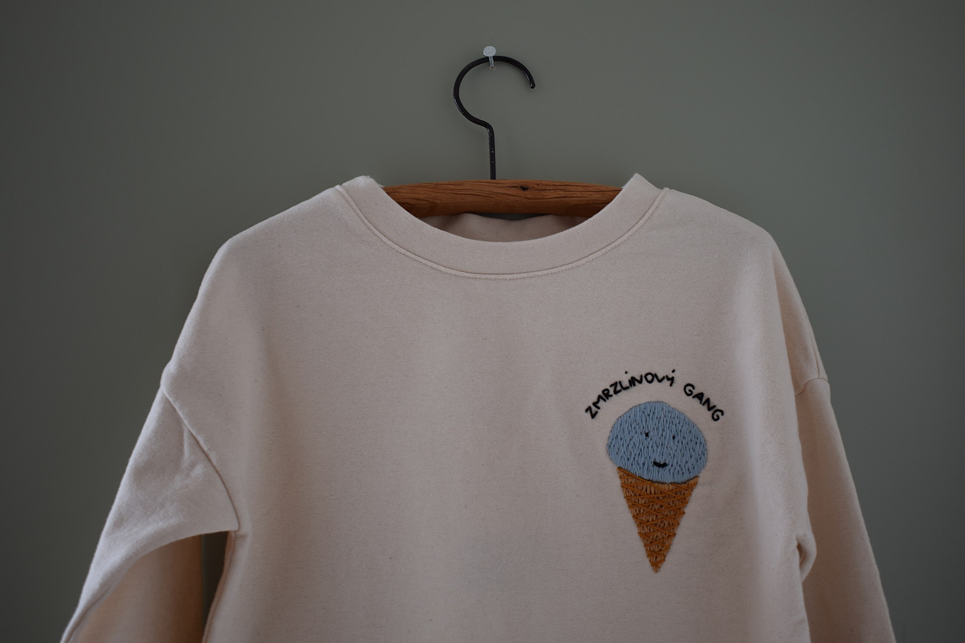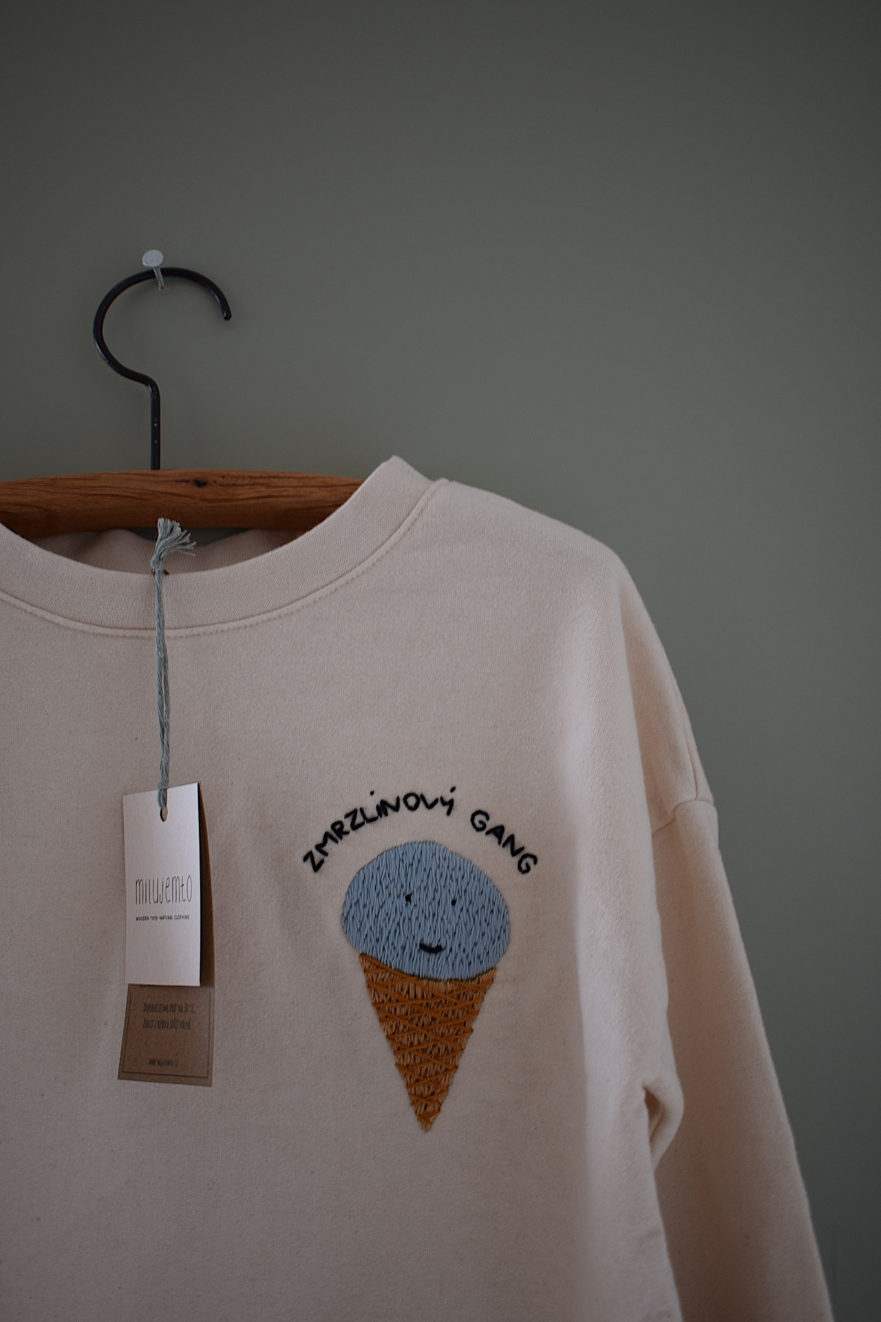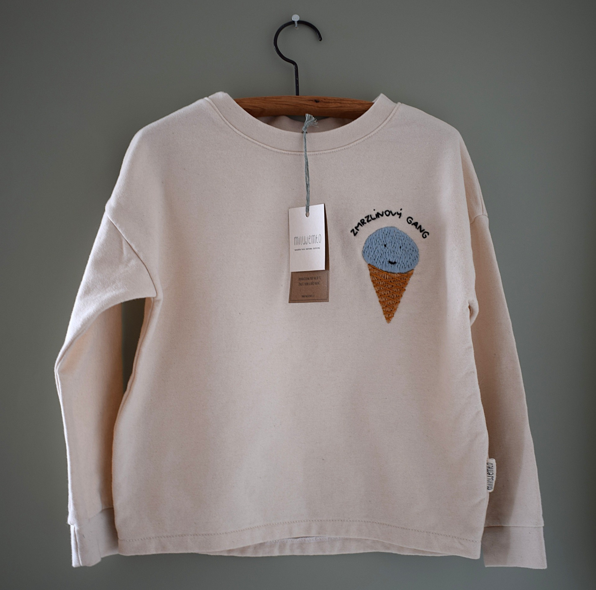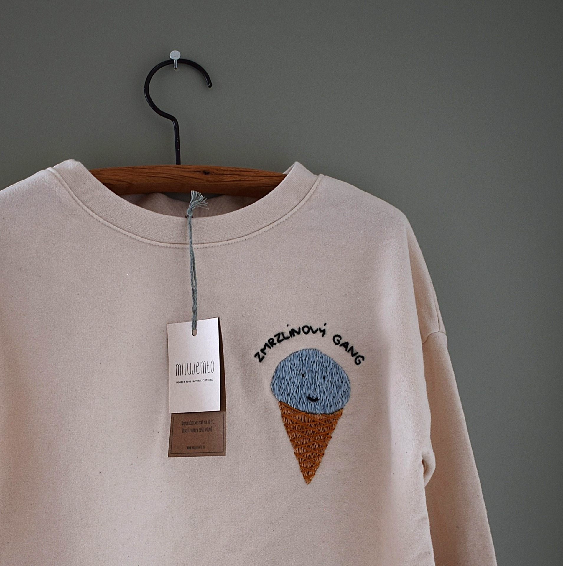 Pohodlná mikina z měkké biobavlny. Ruční výšivka.